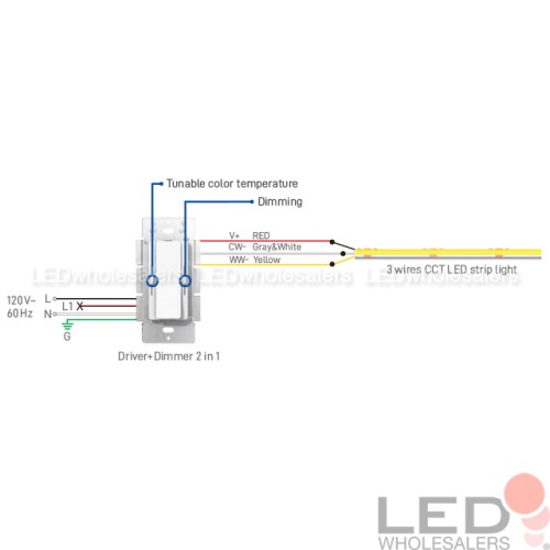 Dimmer+Driver 2-in-1 Wall Switch with Integrated CCT Controller and Constant Voltage PWM 24V 96W Class 2 LED Driver, Single-Pole or 3-Way
